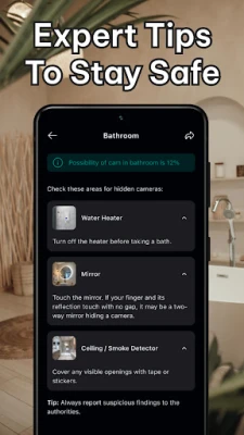 Regain your peace of mind with Hidden Camera Detector, the powerful tool that turns your phone into a privacy protection device. Our app helps you scan for and find hidden cameras and other surveillance devices, so you can be confident that your space is secure.