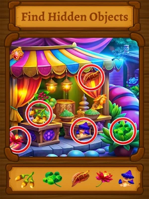 Search and find hidden objects in bright, detailed scenes