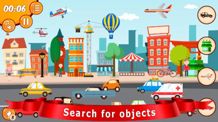 Free games for kids - an educational and exciting puzzle games to explore the world and the objects that surround us. You will need to be attentive and smart to finding hidden object in learning games for toddlers in the level. The faster they are found, the more stars you can get for the completed level. Earned stars are needed to open new levels and complete locations offline games for free. Also, kids games allow you to use a hint when you can’t find an item.