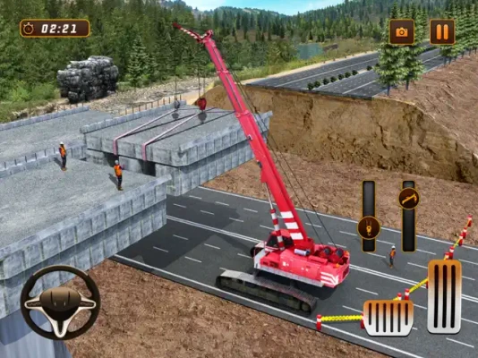 Drive various heavy vehicles like excavators and cranes to dig the ground. Once the digger digs the ground you have to transport the mixer to pour cement and build the pillars. Once the pillars are completed you have to transport the bridge parts and then you have to complete the bridge. These bridges will fill the gap on the road ways.