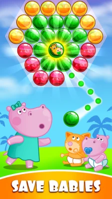 If you like simple and funny games, try to pop bubbles with Hippo. Let’s play this classical bubble shooter together! Pop colorful balls and make your results better every time you play. It is impossible to stop till one balloon is left. Various levels and unexpected tasks will be interesting for both boys and girls and for their parents as well. Everybody would like to become the most skillful shooter. There are a lot of colorful balloons for everybody.