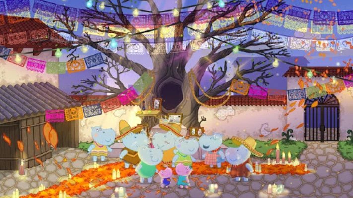 But all these monsters are not frightening at all, they all are local citizens. Dia de los Muertos is very different from the famous Halloween. You don't need to frighten strangers, collect sweets and tell scary stories. All these are the classical entertainment during Halloween. The day of the dead is dedicated to the memory of the dead. Everybody believes, that during this day all the dead relatives and ancestors could visit their houses. Holiday culture comes from the ancient traditions of Maya and Aztecs. During this holiday, you can observe different rituals in every house. There is an altar, called ofrend in every house. Hippo's relatives put their ofrend around huge dead tree at the backyard. But this time, holiday ceremony has been broken. Accidentally children have fallen into the tree hole and happend to be in the world of the dead! From that very moment, mysterious and exciting adventures start. We are going to be a part of a trip where riddles and mysteries could happen every second.