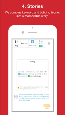 ・Simple stories or 'mnemonics' for each character make learning simple and fun.