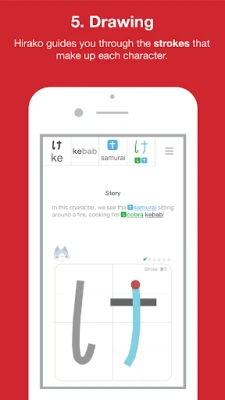 The cool Hirako and Katato mascots are not the only unique feature of Hiragana Quest. We differ from the similar Japanese learning apps with the additional learning tools you can’t find elsewhere. There are guides and trace for each stroke on your screen, you can level up as you learn and test yourself to make sure you are on point with your learning.
