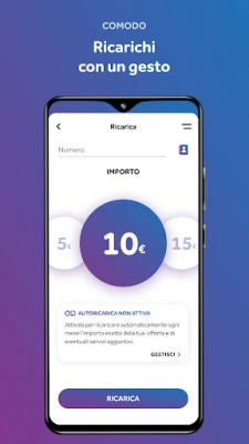 o Ricaricare con un gesto, pagando con carta di credito o PayPal