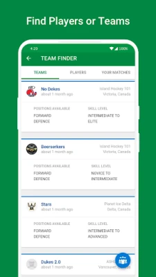 • Find a team that’s a match through position/skill level on Team Finder