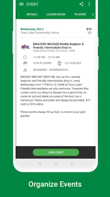 • Join local hockey games, pay online, then just show up to play