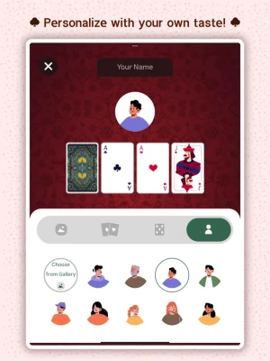 Personalize: Change the appearance of the game with your own taste! You can choose your own avatar, deck type, card backgrounds and game background as you like. Undo: Feel free to undo if you made a mistake.
