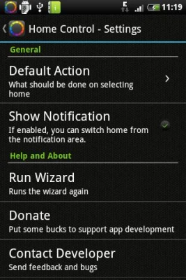 HOME Control is a home management app for android. You can easily switch between homescreen, kill it and see the details and clear default.