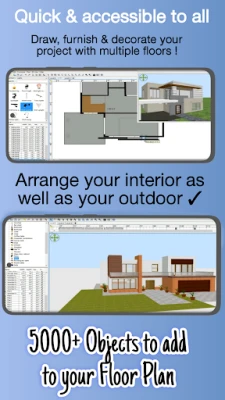 Home Plan Creator 3D Mobile is designed for individuals seeking to swiftly create interior designs, whether for relocating or renovating their current residence or workspace. With Home Plan Creator 3D, you can: