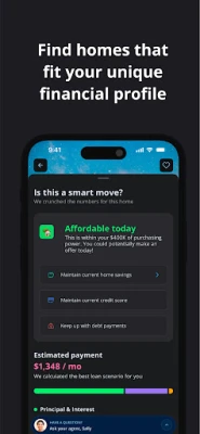 Homebot's comprehensive listings make it easy to search for homes in your desired areas. Get detailed information, explore photos, and dive into recommended options within your budget. If a particular home is out of reach, Homebot provides insights on when you will be able to afford it based on your savings, credit, or debt improvements.