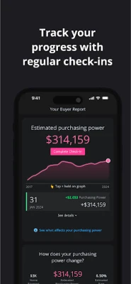Are you in the market for a new or second home? Homebot calculates your purchasing power, showing you exactly how much you qualify for. Discover the aspects of your finances to improve, such as savings, credit, or debt, and work hand in hand with your home advisor to achieve your home-buying goals. Track your progress over time and witness your purchasing power grow.
