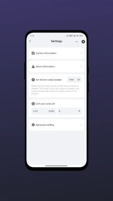 - Self-registration of users - Automatic search for quick station establishment - Bluetooth networking or Wi-Fi networking - Status monitoring - Power generation statistics - Earnings Statistics