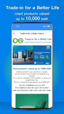 HomePro Mobile App comes with a standard delivery service and installation from a team of quality technicians that has been carefully selected from HomePro. Moreover, customers are able to use other services such as ‘Same Day Delivery’ service that speedily delivers products to customers within a day. ‘Click&Collect’ service is another choice for customers who are willing to purchase and pick-up products at the nearby store by themselves within the specified date and time.