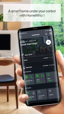 With HomeWhiz smart home application you can connect your smart appliances and other smart devices to your mobile device, allowing you to control and monitor them from anywhere.