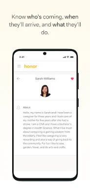 Honor provides in-home senior care, helping older adults continue to live well and independently at home. The Honor Family App lets you know who’s coming to the house for a care visit, exactly when they arrive and leave, and what tasks have been completed. It’s never been easier to manage care and companionship for yourself or your loved one.