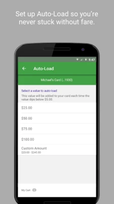 • Set up Auto-Load to top up your card automatically when your balance gets low