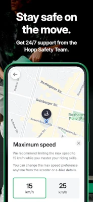 Hopp's in-app Safety Toolkit features a beginner mode, a riding tutorial, safety tips, and a guide to local traffic rules to help you stay safe on the move.