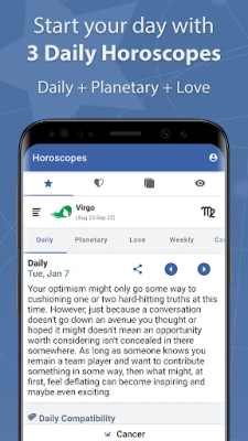 Go beyond your Daily Horoscope. This app features a wide variety of Daily, Weekly, Monthly and Annual Horoscopes, along with Zodiac Sign Compatibility and Tarot Card Readings.