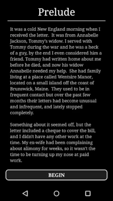 If you enjoyed this part, the adventure continues in the sequel, Horror at Innsport. Available now on Google Play: https://play.google.com/store/apps/details?id=nz.co.karmicshift.horror2a