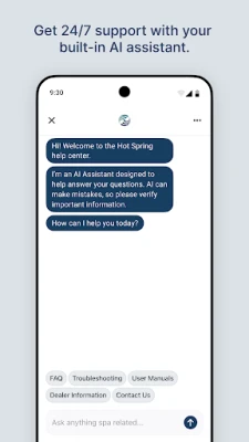 Enhance your FreshWater IQ experience with the Hot Spring Spas app, your digital spa companion that keeps you connected to your hot tub, wherever you are.