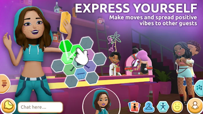 Dress to impress and stand out from the crowd with an abundance of stylish clothing, items and accessories. Customize your room with a variety of furniture items and decorations. Learn secret gestures and dance moves – and then party into the early hours inside unique public rooms!
