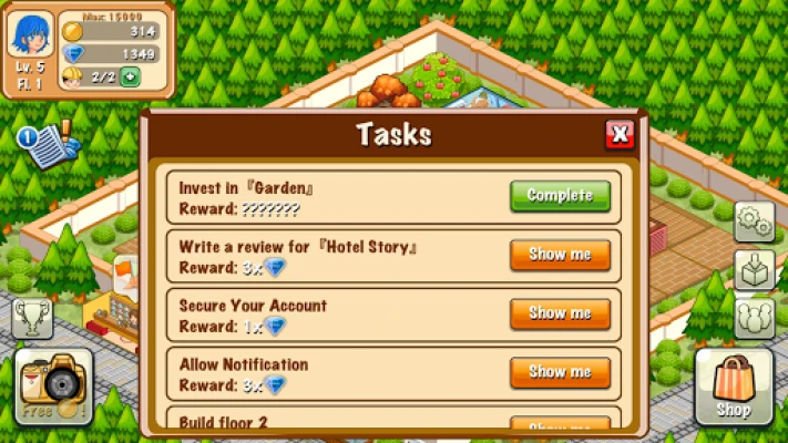 Build & design your dream resort to richness! Upgrade and invest your facilities to attract special guests and tourists! Be the best hotelier!
