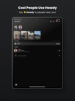 Howdy is a location-based social network that allows you to make nearby friends, discover events in your neighborhood and instantly share your photos, stories and more in a single-tap across all platforms!