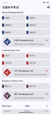 This app is free to use HSK/YCT test with real exam paper include all level from 1 to 6. It is also provide new words for self learn with quiz.