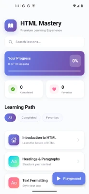 HTML Mastery is your complete guide to learning HTML from scratch. Whether you're a beginner starting your web development journey or looking to refresh your skills, this beautiful and intuitive app makes learning HTML fun and effective.