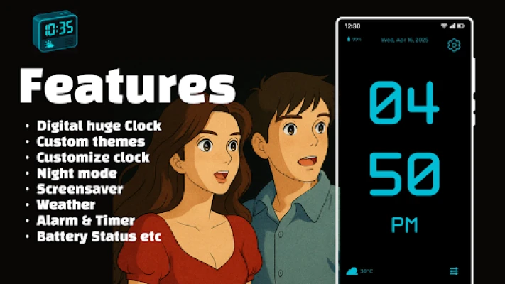 Transform your device into a modern, easy-to-read big digital clock with clear visibility and stunning design. The Huge digital clock, huge clock & big clock app is built for anyone who wants an elegant big clock display at home, at work, or by the bedside. huge clock & big clock app works seamlessly as a bedside clock app, a large clock display centerpiece, or a big digital clock full screen time hub. With adjustable settings and powerful features, it’s not just a clock — it’s a complete time experience.