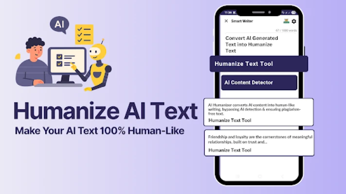 Breathe life into your robotic content with our undetectable AI humanizer app. your ultimate tool for transforming AI generated text into natural, fluent, and engaging writing. The undetectable AI humanize technology behind this app uses powerful algorithms and natural language processing to detect robotic tone, adjust style, and make your text sound 100% human. Whether you’re a writer, marketer, student, or blogger, this app ensures your content passes all AI detection tools with ease.
