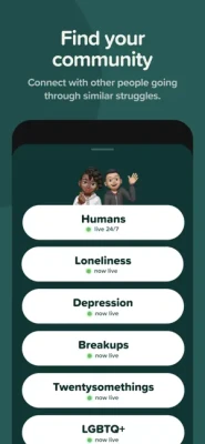 Find communities for breakups, relationships, dating, ADHD, anxiety, loneliness, gratitude, and more. Join a weekly meeting to share your struggles, get advice, and support each other. Connect one on one with other community members.