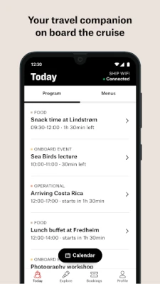 The easiest way to access information about your voyage on board. Download the app at home and use it onboard to stay up to date throughout your trip.