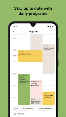 – Check your bookings and essential information. – See the daily programme at a glance.