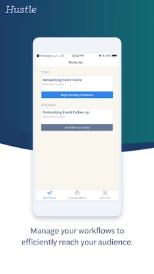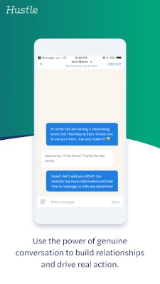 Hustle enables personal texting communication between an organization's employees or volunteers and its list of contacts for networking. Hustle can be used for goals like promoting events, engaging supporters, and marketing to sales leads.