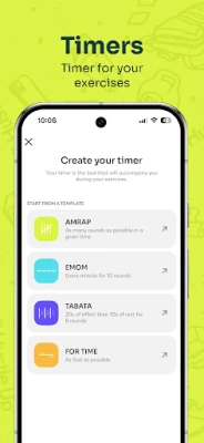 - Easily use custom timers for every type of workout: EMOM, For Time, AMRAP, and Tabata