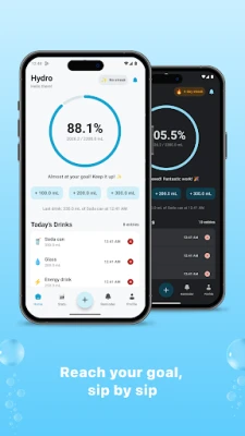 Meet Hydro, the easiest way to track your water intake and build a healthy hydration habit. Our smart drink reminder and water log help you reach your daily goals effortlessly. Stop guessing, start tracking.