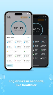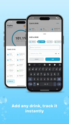 ⚡ Quick Logging: Add water or your favorite drinks in a single tap.