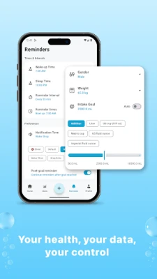 💧 Smart Reminders: Get timely notifications that fit your schedule (wake/sleep times, custom intervals).