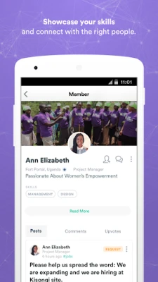 • Rich membership directories allow you to see who is in your groups and networks and what their skills are.