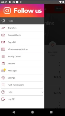 Available features include: Accounts - Check your latest account balance and search recent transactions by date, amount, or check number.
