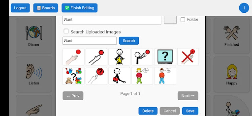 • Editing Tools – PIN-protected menu for parents, teachers, or therapists to create, edit, reorder, and delete boards or tiles.