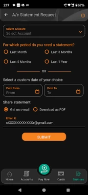 • Control your Debit Card by setting your own ATM and PoS transaction limit, switching your Debit card transactions On or Off and much more.