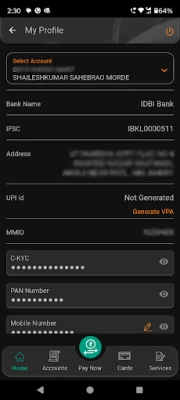 You can view the account statements on the go at your convenience, even while at work or commuting. Checking the balance in your account, managing and scheduling utility bill payments, adding a top-up in your prepaid mobile phone or DTH account, paying VISA credit card bills, or instantly transferring money from one bank account to another through IMPS is now possible at the click of just a few buttons on your phone.