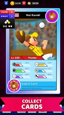 Collect Baseball cards! Each card brings in a new player who can raise your game to the next level! What player will you get next? Can you collect them all?