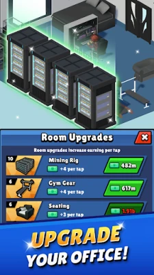 Customization: Purchase Gym Gear, luxury Seating, and high-end decor to increase your earnings per tap.