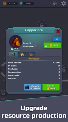 Just like in other empire building simulator games, you need to develop and upgrade your production by mining and crafting resources and earning gold. As in other tap, clicker games, you can upgrade and automate factories and earn gold even if you are offline!