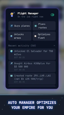 🤖 Auto Flight Manager: assigns planes, creates routes, and re-optimizes your entire network automatically.