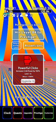 Enhance your clicking, idle generation, and quest rewards with powerful upgrades. Strategize and maximize efficiency.
